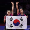 신유빈, 태극기 방향 바로 잡아준 섬세함 화제 '탁구 잘하고 똑똑하기까지'... 전지희와 폭풍 눈물