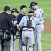 [포토] 흔들리는 와이스, 양상문 코치 마운드로