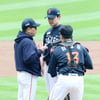 [포토]'양상문 코치와 김서현 많은 대화나눠' 김경문 감독