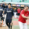 [포토]'한화 양승관 코치와 악수나누는' SSG 이숭용 감독