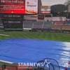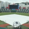사직 그라운드에 대형 방수포 깔렸다... 비 예보 있는 부산, 롯데-한화전 정상개최 가능할까 [부산 현장]