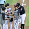 [포토] 손용준 '대타로 나와 헤드샷이라니'