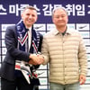 [포토] 니콜라이스 마줄스, 유재학 위원장과 악수
