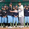 [포토] 이정후, 휘문고 주장 유제민에 유니폼 전달