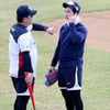 [포토]'훈련장 그라운드 사정 살피는' 이진영, 이동욱 코치