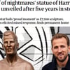'최악의 케인 동상' 5년 만에 세상 밖으로! 본인과 나란히 앉았는데... "악몽 같아" 조롱 폭발