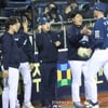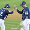 [포토] 라일리, 100구 던진 후 박민우와 하이파이브