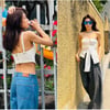 '47세' 하지원, 크롭티 입고 길에서..한 줌 개미 허리