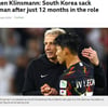 클린스만 굴욕, 외신도 조리돌림 "선수 관리-태도 모두 낙제점"... '1년 만에 잘렸다' 집중 조명