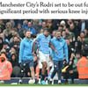 '발롱도르 1순위 선수 잃었다' 로드리 십자인대 파열→펩도 답답 "복귀 오랜 시간 걸릴 것"... 결국 시즌아웃