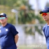 [포토]'선수들 훈련 지켜보는' 김광삼 투수코치