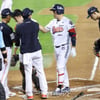 [포토] 최재훈-양의지-문동주 '미안해 파도타기'