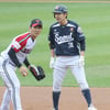 [포토] 정수빈 '폭설 뚫고 선제 2루타'