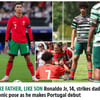호날두 아들, 벌써 '아버지 포즈' 따라 하네! 포르투갈 국대 데뷔전서 등번호 7번+움직임도 '판박이'
