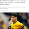'황희찬 인종차별 선수, FIFA 철퇴' 英 난리 났다! 유력지 줄줄이 보도... "중징계 환영해" 울브스 환호