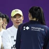 [포토] 김연경 '핑크 장막 뒤로 총총히'