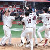 [포토] 최주환 '끝내기 홈런포에 워터쇼'