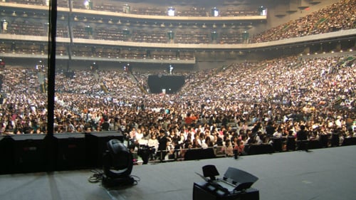 <사진=지난달 24일 일본 사이타마현 슈퍼아레나에서 열린 '2005 한류 올스타 서미트' 공연에 참가한 이병헌과 공연장을 가득 메운 일본팬들의 모습>