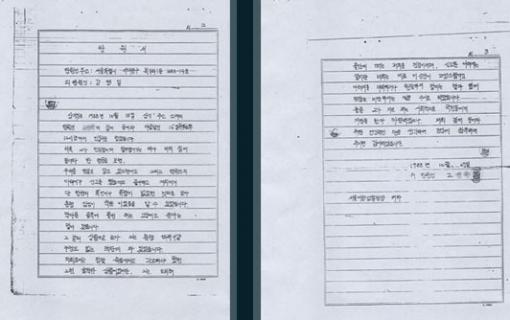 "상기인은 1988년 10월 15일 탄원인 고00의 집에 들어와 다음날인 16일 오후 12시까지 인질극을 벌였습니다. 비록 그가 인질범이며 탈주범이기는 하나 저희 집에 들어와 우리를 인질로 잡고 있으면서도 그리고 탄원인의 아버지가 신고를 했음에도 불구하고 저희에게 단 한번의 폭언이나 폭행이 없었던 것으로 보아 분명 심성이 착한이였음을 알 수 있었습니다.