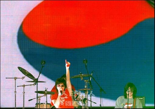 가수 윤도현이 논란의 대상이 됐던 록버전 애국가를 처음으로 무대에서 선보였다.