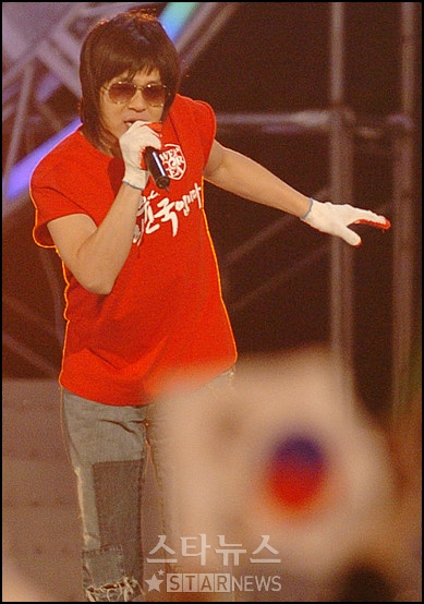 윤도현은 1일 오후 독일월드컵 D-100일을 기념해 서울시청앞 서울광장에서 열린 KBS2 특별생방송 '2006 어게인 코리아-대한민국'에 출연해 '머리 아파' '아리랑'과 함께 '애국가'를 불렀다.