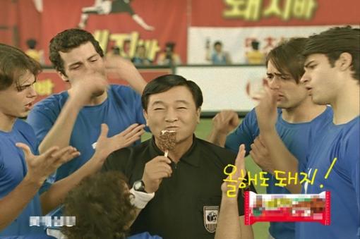 2002년 한일 월드컵에서 한국 대 이탈리아 경기를 패러디한 롯데삼강 '돼지바' CF에서 임채무는 8대2 가르마를 한 모레노 주심으로 분해 천연덕스러운 연기를 펼쳤다. 네티즌들을 열광시킨 한 편의 CF, 그 뒷이야기를 정리해봤다.