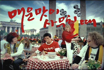 독일 올림픽 스타디움과 브란덴부르크 문이 보이는 광장에서 '붉은악마' 복장으로 한국 대표팀의 원정응원을 나온 차승원은 독일의 느끼한 음식에 질려 붉은 색만 봐도 맵고 칼칼한 고추장이 사무친다. 이때 한 미녀가 오삼불고기를 들고 오자 '대~한민국'을 외치며 맛보려 하지만, 환상에서 깨어나 보니 느끼한 소시지 치즈범벅이었다는 것이 CF의 내용이다.