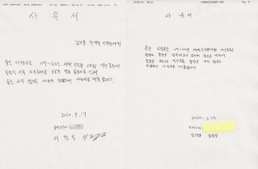 ▶ 이정수, 김성일 선수는 전재목 코치의 강압적인 지시에 의해 전재목 코치가 불러주는 대로 불출전 사유서를 작성했다고 진술한 반면, 전재목 코치는 선수들이 자의적으로 불출전을 결정하였고, 다만 선수들이 사유서 작성방법을 몰라 문안만 불러주었다는 상반되는 내용을 진술하였으나,