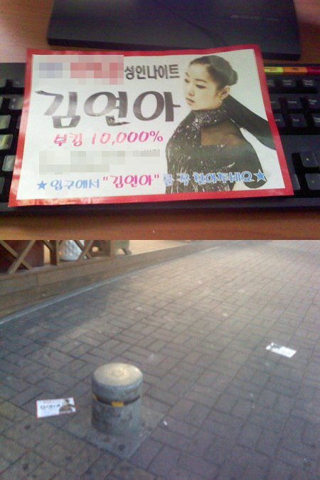 네티즌들은 “초상권 침해 아닌가”, “국가 위상을 높여준 김 선수를 유흥업소에서 무단 도용해도 되는가”, “길거리에 떨어져 있는 해당 광고지를 사람들이 밟고 다닐 것을 생각하니 안타깝다”며 반발했다.