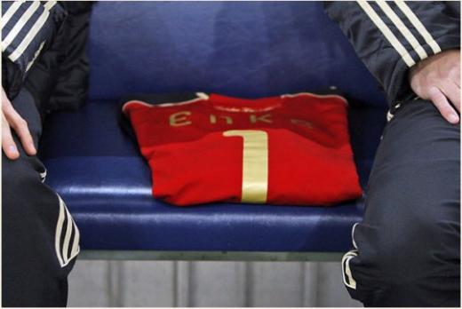 독일과 호주의 2010 남아공월드컵 예선 첫 경기가 있었던 지난 14일(이하 한국시간). 한 선수의 유니폼이 고이 접힌 채 독일 팀 벤치 한 켠을 차지하고 있었다. 유니폼에는 등번호 1번과 함께 'Enke'라는 이름이 선명하게 새겨져 있었다.