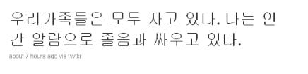 "나는 인간 알람으로 졸음과 싸우고 있다."
