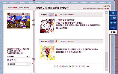 특히 매 경기마다 인상적인 플레이를 보여주며 이번 여자월드컵 최고의 스타가 된 지소연(19,한양여대)의 미니홈피에는 "멋진경기 잘 봤다", "감동적이었다"는 글들이 실시간으로 올라왔다.