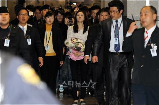 '피겨여왕' 김연아가 20일 오후 인천국제공항을 통해 입국해 취재진과 기자회견을 갖기 위해 이동하고 있다.