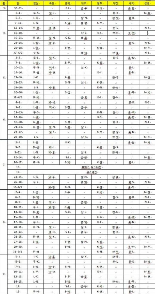또 팀 간 16차전(홈8, 원정8)으로 거행됨에 따라 3-3, 3-3, 2-2연전으로 하여 568경기를 우선 편성했다.