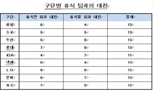 이번에 재편성된 경기일정은 구단별로 휴식일과 연결되는 팀들과의 대진과 일.공휴일 경기수를 가급적 균등하게 편성했다.