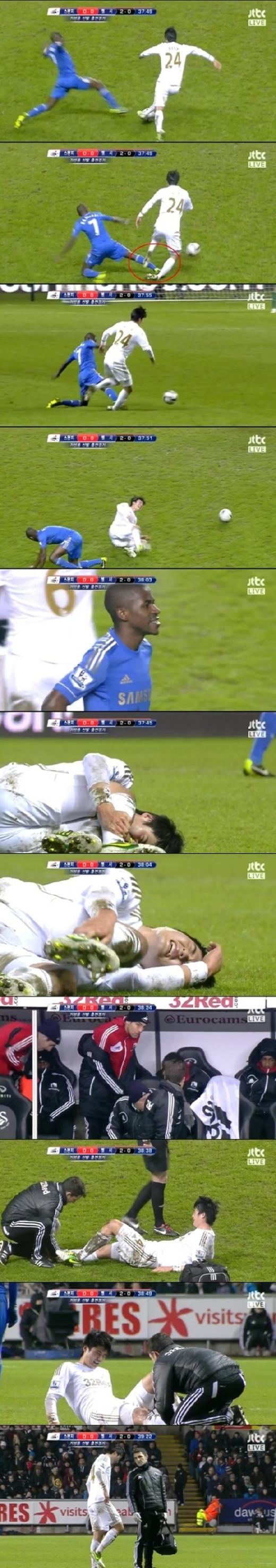 천만다행이었다. '제2의 톰 밀러' 사건이 일어날 뻔한 아찔한 순간이었다. 기성용(24,스완지 시티)이 경기 도중 하미레스(26,첼시)의 거친 태클에 그대로 발목이 접질리는 충격적인 상황을 맞이했다.