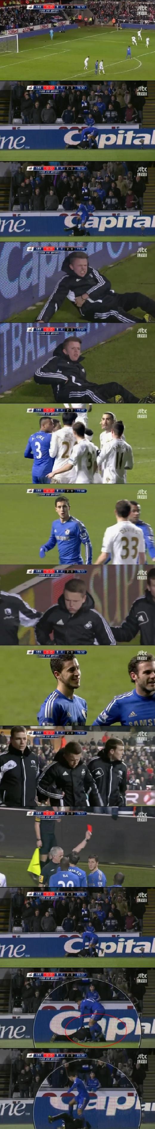 한편 이날 경기 도중 첼시의 아자르가 홈구장인 스완지 시티의 볼보이를 발로 차는 사건이 발생했다. 후반 32분 공이 골라인 아웃되며 스완지 시티의 골킥이 선언됐다. 최소 2골을 넣어야 연장전까지 바라볼 수 있는 첼시는 마음이 급했다.