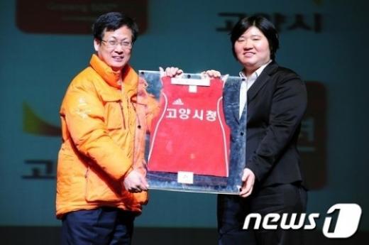 한편 이날 고양시는 장미란에게 공로패를, 장미란의 아버지인 장호철씨에게는 장한 아버지상을 각각 수여했다.