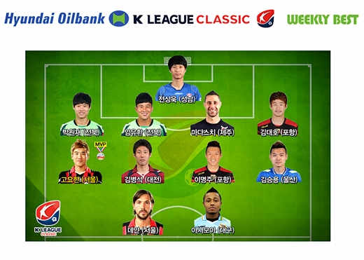 한국프로축구연맹(이하 연맹)은 지난 27일과 28일에 걸쳐 열린 '2013 현대오일뱅크 K리그 클래식' 9라운드 MVP 및 베스트 11을 선정해 30일 발표했다.