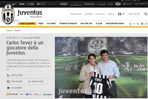 2009년 맨체스터 유나이티드에서 맨시티로 이적한 테베스는 네 시즌 동안 148경기 출전해 74골로 맹활약했다. 이로써 지난 1월 아틀레틱 빌바오의 공격수 페르난도 요렌테를 영입한 유벤투스는 테베스의 영입과 함께 막강한 공격 진용을 갖추게 됐다.