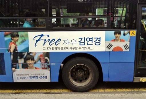 김연경의 팬카페인 '연경홀릭(YEON KOUNG HOLIC)'은 지난달 22일부터 한 달간 서울시내 2개 노선에 김연경을 응원하는 메시지가 적힌 광고를 게재했다고 밝혔다.