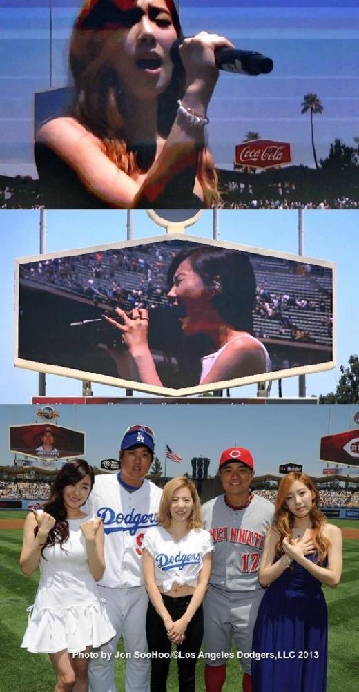 이어 태연과, 티파니, 써니가 그라운드에 모습을 드러냈다. 보라색 드레스를 차려입은 태연은 폭발적인 가창력으로 애국가를 열창했다. 태연의 뒤를 이어 티파니는 미국 국가(Star Spangled Banner)를 부르며 다저스타디움에 모인 관중들의 많은 박수를 받았다.