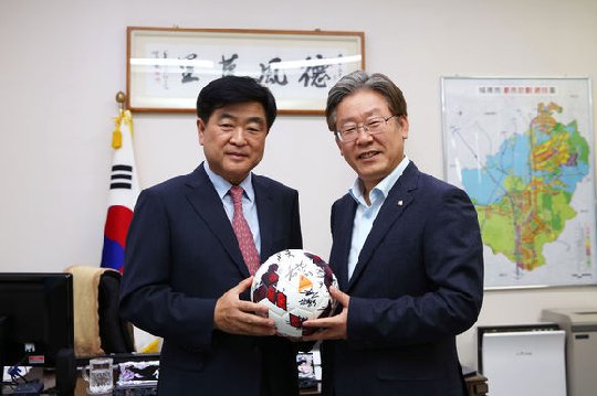 이재명 시장은 25일 시민구단 창단에 반대하고 있는 새누리당 측에 시민구단 지원조례안 통과를 촉구하는 호소문을 전달하며 설득에 나섰다.