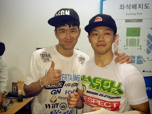 두 선수는 지난 9일 서울 송파구에 위치한 올림픽공원 올림픽홀에서 열린 '로드FC 14' 라이트급 경기에서 맞대결을 펼쳤다. 이날 윤형빈은 1라운드 4분 11초 만에 TKO 승리를 거뒀다.
