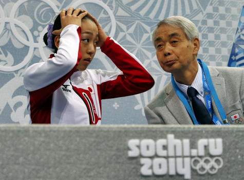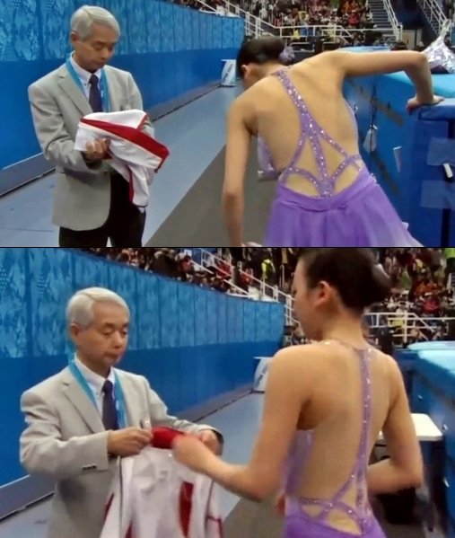 연기를 마쳤다. 아사다 마오(24,일본)에게서 밝은 표정은 찾아볼 수 없었다. 그런 그에게 아무 말 없이 옷을 입혀주는 '노(老) 코치'가 있었다. 한국 나이 73세. 아사다 마오의 스승 사토 노부오(72) 코치. 경기에 앞서 마오의 손을 꼭 잡던 칠십 노구도 함께 고개를 떨궜다.