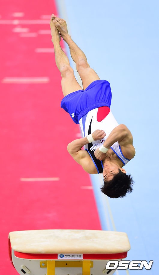 양학선은 지난 19일 오후 인천 남동체육관에서 열린 '2014 코리안컵 인천국제체조대회'에서 도마 종목에 출전해 1,2차시기 평균 15.412점을 기록하며 우승을 차지했다.