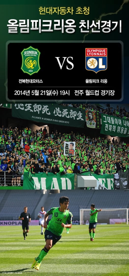 전라북도가 프랑스 명문 클럽 올림피크 리옹과의 친선경기를 앞두고 들썩이고 있다.