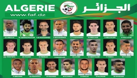 알제리축구협회는 2일(이하 한국시간) 밤 브라질월드컵에 출전하는 알제리 축구대표팀 23인의 명단을 발표했다.