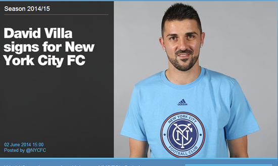 뉴욕시티는 2일(이하 한국시간) 밤 공식홈페이지를 통해 비야 영입을 발표했다. 계약기간은 3년이며 등번호는 7번이다. 비야는 뉴욕시티와 계약한 첫 번째 선수다.