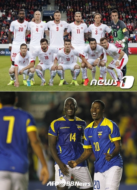 스위스와 에콰도르는 16일(한국시간) 오전 1시 브라질 브라질리아 에스타디오 나시오날 데 브라질리아에서 '2014 브라질 월드컵' E조(스위스-에콰도르-프랑스-온두라스) 조별 예선 첫 경기를 치른다.